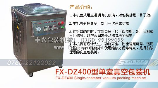 豐興包裝機(jī)械具有十余年包裝機(jī)械研制經(jīng)驗(yàn),其生產(chǎn)的單室真空包裝機(jī)系列產(chǎn)品全部采用了304不銹鋼材料,質(zhì)量可靠,性能穩(wěn)定,在業(yè)界久負(fù)盛名。
