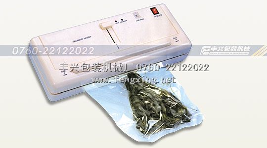 豐興牌小型真空包裝機,具有抽真空(真空抽氣)、封口的主要功能,它體積小,移動方便;功率小,省電;功能齊全,使用方便,操作簡單等等,是目前非常理想的袖珍型真空包裝機。在小型真空包裝機作抽真空、封口包裝處理后,食物可以大大延長保質期,即使不放入冰箱,熟食的真空包裝理論上保鮮效果也達到3個月左右(超市所售真空包裝的熟食,由于采用了高溫殺菌處理,理論上保質期在3-12個月)。