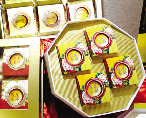 而在鳳凰臺飯店,記者看到,這里銷售的月餅雖然品種不多,但包裝都顯得很有“檔次”。該店的月餅價格分99元、199元和299元三種,其中99元的月餅包裝盒呈六邊形,直徑大約40公分,看上去很是氣派,打開盒蓋,里面卻只有4塊月餅。