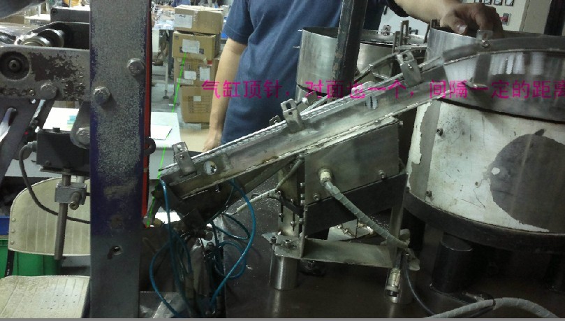 答:在你的落料口處安裝一個(gè)氣動(dòng)擋板,在放包裝盒下面安裝一個(gè)平臺(tái),把重量測(cè)控器或叫做傳感器安裝在平臺(tái)下部。把所有的信號(hào)線和控制線統(tǒng)一接到一個(gè)控制箱,在控制箱上安裝一個(gè)重量限制器,重量限制器是控制氣動(dòng)擋板的。也就是說(shuō)當(dāng)重量達(dá)到設(shè)定值時(shí),重量限制器控制氣動(dòng)擋板使螺絲不再繼續(xù)落下。如果平臺(tái)做成輸送帶的還要加一個(gè)控制啟動(dòng)輸送帶的控制。如果你是電工的話,這種控制是不成問(wèn)題的。下料的時(shí)候有壓縮空氣進(jìn)行吹掃加速嗎?這個(gè)可以確保需要下的料能準(zhǔn)確快速的下去,達(dá)到拉開(kāi)與未下料的間距。下料的時(shí)候有壓縮空氣進(jìn)行吹掃加速嗎?這個(gè)可以確保需要下的料能準(zhǔn)確快速的下去,達(dá)到拉開(kāi)與未下料的間距。還有個(gè)方法:在后面增加一對(duì)氣缸頂針,前面的頂針打開(kāi)的時(shí)候,后面的頂針頂住,準(zhǔn)確定位你需要的下料量,在每個(gè)下料槽都可以使用可調(diào)節(jié)的滑動(dòng)槽固定氣缸頂針,每個(gè)都是準(zhǔn)確的數(shù)量。