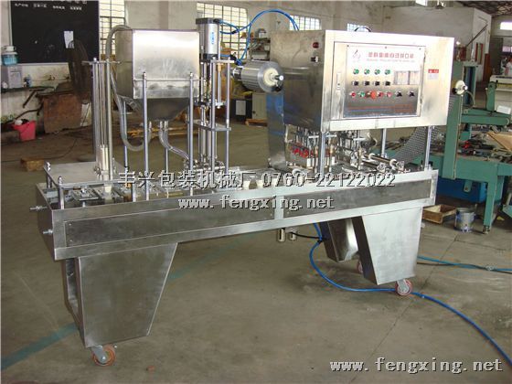 本機(jī)具有自動(dòng)膏體、液體灌裝,自動(dòng)溫控封口切邊,廢料收卷,全機(jī)采用優(yōu)質(zhì)材料制造,傳動(dòng)部件及電氣元件均為國(guó)內(nèi)名牌廠家提供,適合各種規(guī)格塑盒(杯),經(jīng)自動(dòng)定量灌裝后,進(jìn)行殺菌、打日期、自動(dòng)熱合封蓋、剪切、修整、落杯、廢料收卷等功能。