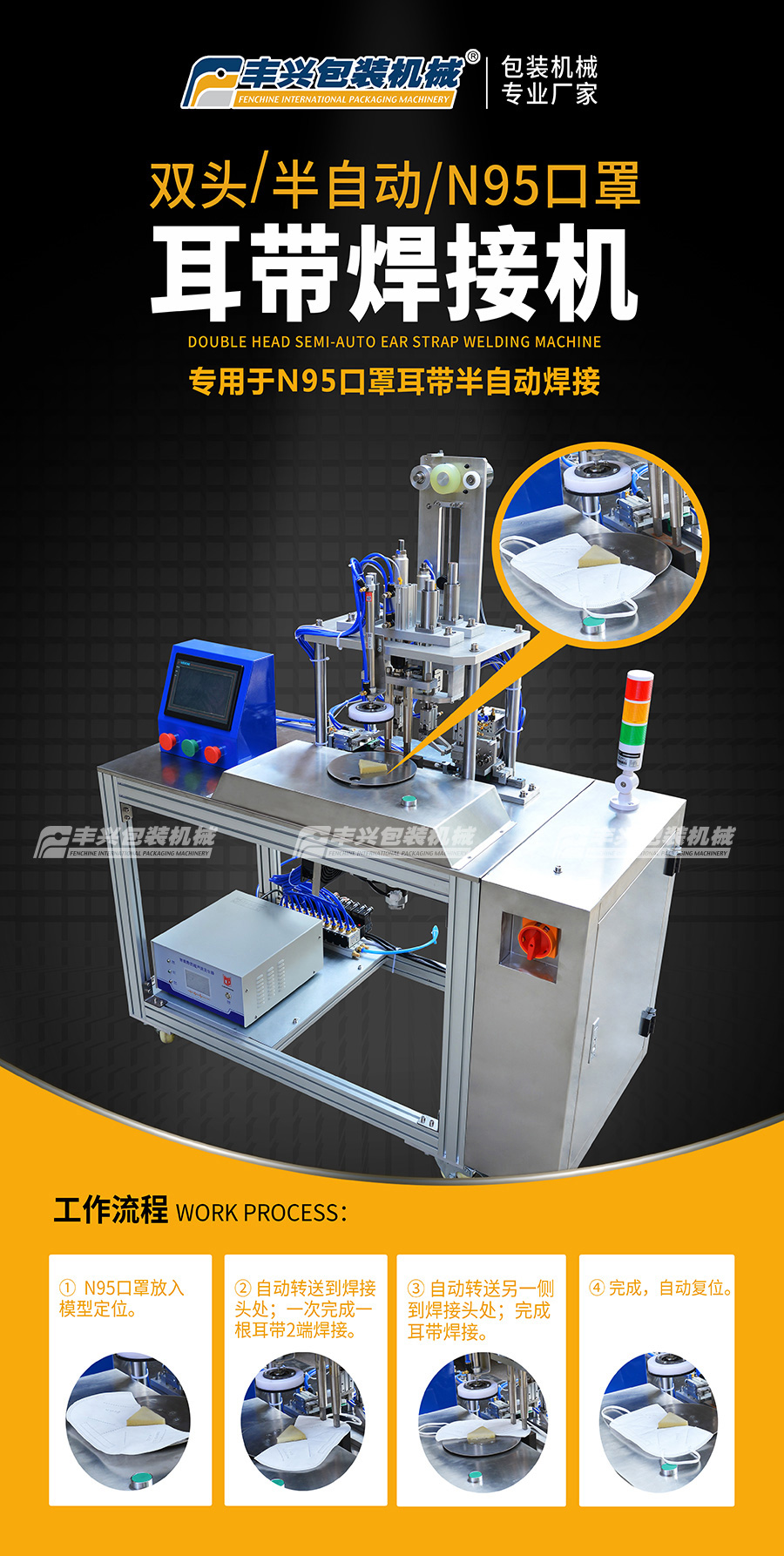 This machine is a semi-automatic machine, simple to operate, easy to learn and easy to understand, stable performance, is a machine equipment that improves the production efficiency of masks. Suitable for N95 earband welding.