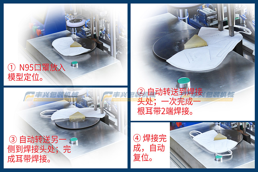 N95口罩耳帶半自動焊接機(jī)專為N95口罩耳帶半自動化點(diǎn)焊而設(shè)計(jì)的機(jī)器,本機(jī)根據(jù)N95口罩裁剪特點(diǎn)設(shè)計(jì)三角形定位模型,特別采用超聲波融合技術(shù),一次完成N95口罩一根耳帶兩端的定位焊接,融合牢固。